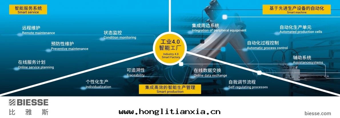 科技以(yǐ)賦能(néng),智造創未来(lái),Biesse(比雅斯)致(zhì)力于(yú)将行業願景变为(wèi)現(xiàn)實(shí),推出(chū)达(dá)到(dào)工業4.0需求的(de)管(guǎn)理(lǐ)软(ruǎn)件(jiàn)和(hé)服(fú)務(wù)平台(tái),結合自(zì)动化(huà)系(xì)統,软(ruǎn)件(jiàn)与硬件(jiàn)相結合,助力企業重構生(shēng)産方(fāng)式,實(shí)現(xiàn)工業4.0。