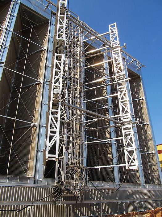 直接空冷機組或間接空冷機�散熱器表面積巨大,清洗工作量��需采用自動清洗裝置進行清洗作業(yè)�我院自主研發(fā)的高壓束陣式自動清洗裝置、方陣掃描式清洗裝置和間接空冷清洗裝置可以為直接或間接空冷機組的A型架提供表面清洗�